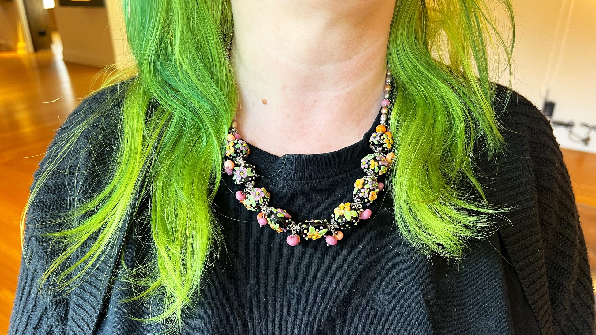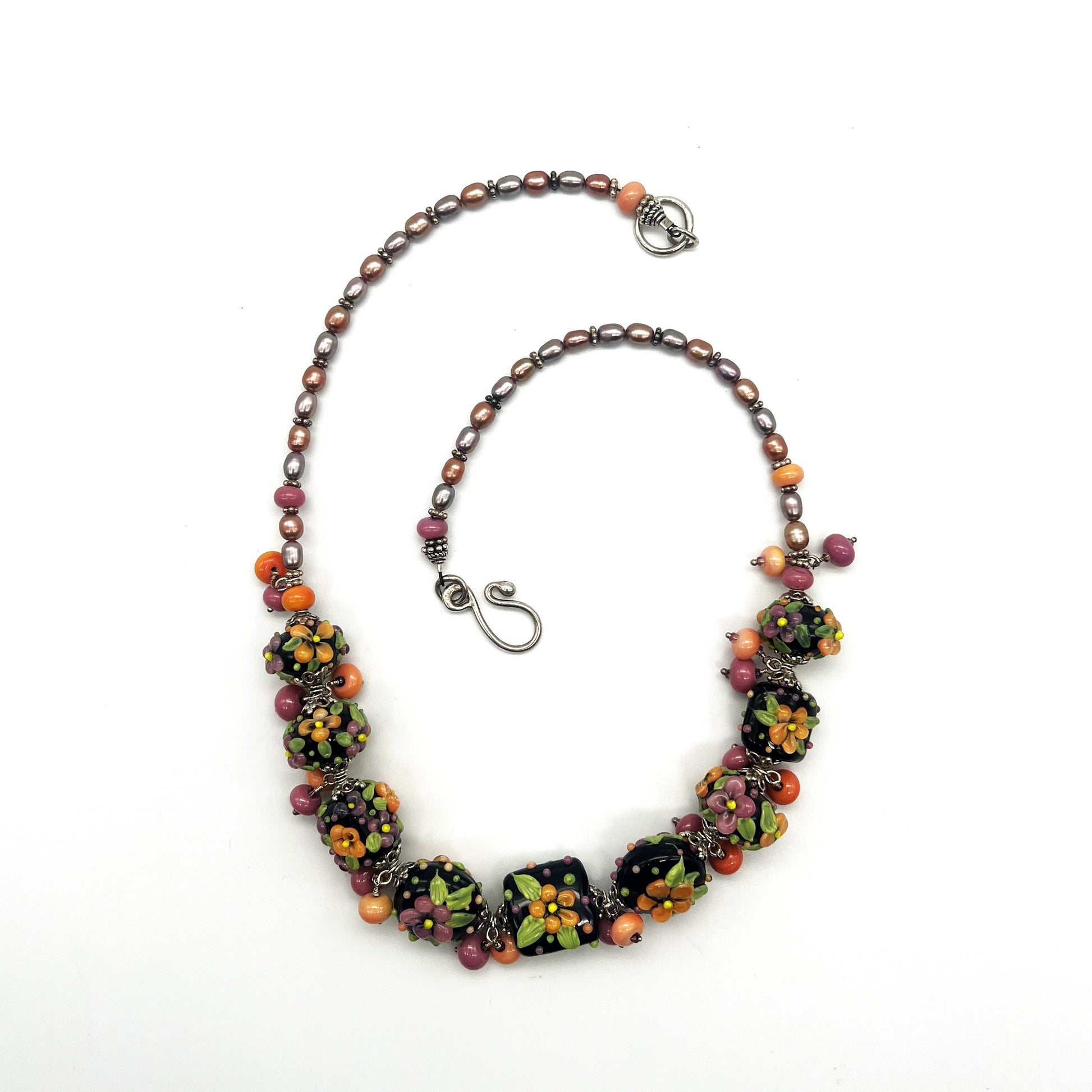 Coral Flower Dangle Necklace by Beth Wenger Johnstone