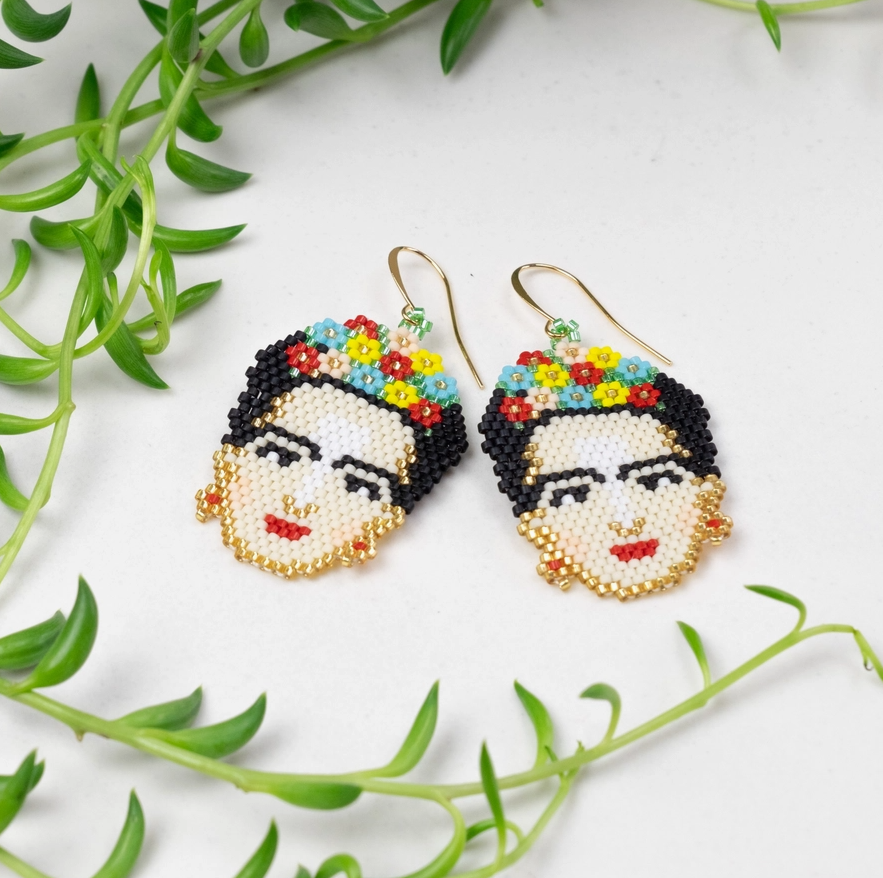 Frida Kahlo Palm Leaf Earrings by Tulia's Artisan Gallery