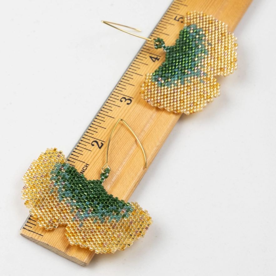 Golden Ginkgo Palm Leaf Earrings by Tulia's Artisan Gallery
